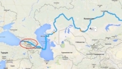 格鲁吉亚媒体刊载的火车从中国经中亚和里海抵达格鲁吉亚的路线图。