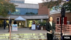 美美国之音中文部记者海伦大选日在弗吉尼亚州一处投票站采访和报道。