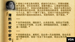 中国官方星期三发布消息,薄熙来一案将于9月22日本周日上午10点宣判。据香港南华早报和多维新闻等多家媒体报道,在此之前,即从9月17日本周二开始,薄熙来在等待宣判期间于上周四,即9月12日,在狱中书写的家书就流传开来。两名与薄家关系密切的人士9月17日向南华早报证实,这封家书的确出自今年64岁的薄熙来之手。