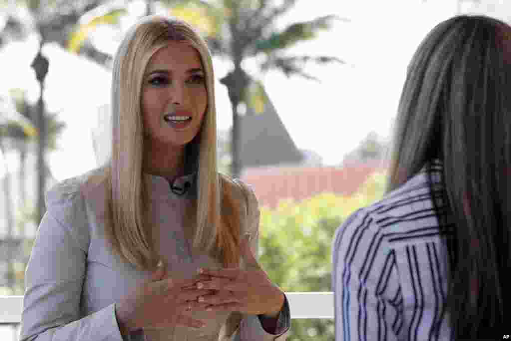 美国白宫高级顾问伊万卡·特朗普2019年4月17日在科特迪瓦阿比让接受采访。